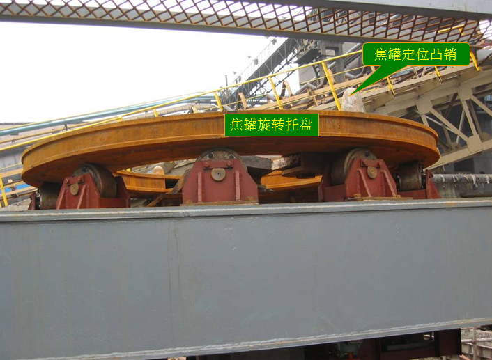 用来装运从炭化室中推出的红焦,并与其他设备配合,将红焦装入干熄炉内。焦罐在接焦过程中绕中心线旋转,均匀布料。