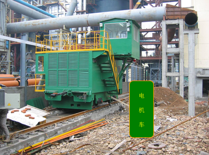 由电机车牵引沿熄焦轨道运行,往返于焦炉与提升井架间运输焦罐。