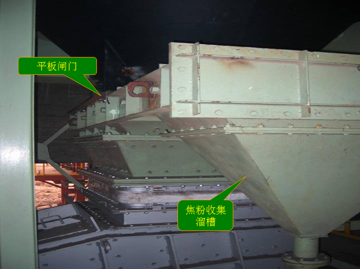安装在干熄炉底部出口。正常生产时平板闸门打开。在年修或排焦装置需要检修时,关闭平板闸门防止干熄炉底部的焦炭落下。